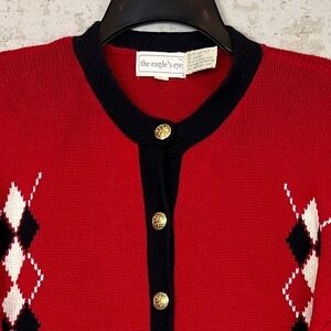 Vintage THE EAGLE'S EYE Womens Cardigan Sweater Large Red Scottie Terrier Dogs