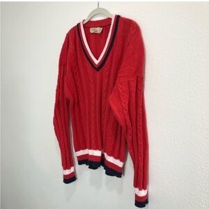 Vintage THE FOX Collection V-neck knit sweater long sleeve cotton red,white