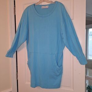 MADE IN USA Turquoise colored cotton knit pullover tunic dress with pockets