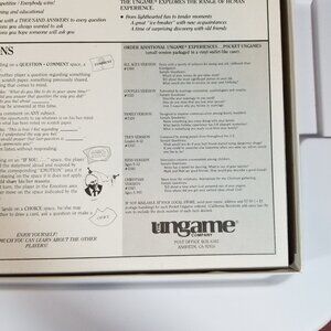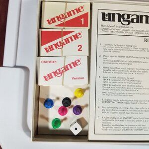 The vintage "The Ungame" Christian Version board game, produced by The Ungame Co. in 1984, is designed for 2-6 players, suitable for boys and girls aged 5 and up. This award-winning game encourages self-expression and communication in a non-competitive setting. As part of the Games 100 list, it offers a unique and engaging experience for families to come together and interact in a meaningful way.