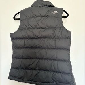 Stylish gray puffer vest by The North Face. Perfect for layering.