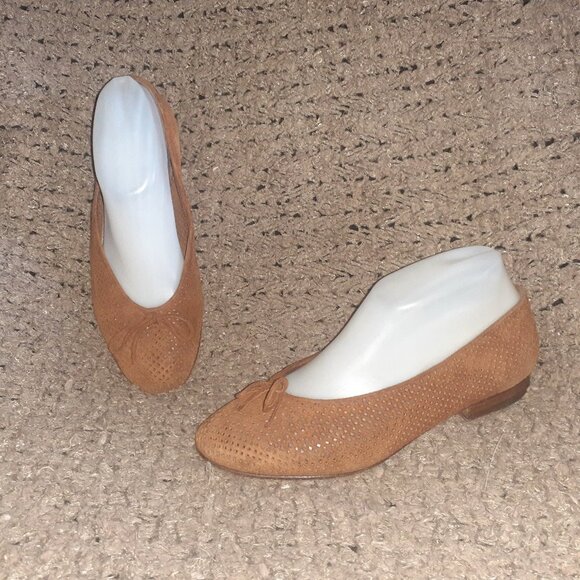 Vintage THIERRY RABOTIN-Perforated Chestnut Suede Ballet Flats-Sz 37.5-Excellent