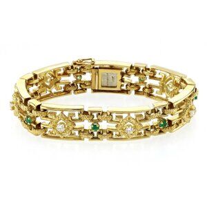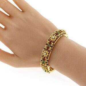Vintage TIFFANY & Co. 18K Yellow Gold Diamond and Emerald Bracelet Size 6.5"