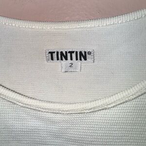 Vintage TINTIN - Milou Dog Cartoon Embroidered White Long Sleeve Tee T Shirt Size: 2 (unsure what sizing this is)