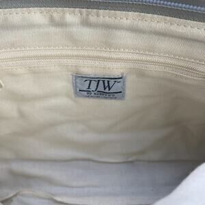 Vintage TJW by Mervyns Light Gray Zip Top Leather Clutch Handbag