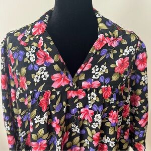 Beautiful muumuu dress from T & L Muumuu Factory in great condition! Hawaiian tropical black dress featuring vibrant pink and purple floral patterns. Has pockets! Relaxed flowy dress for ultimate comfort. Works as a sundress summer sun dress ☀️