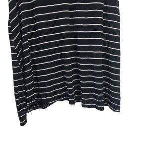 This vintage black and white striped dress offers a timeless 90s charm. Its flowy A-line silhouette and short sleeves ensure ease and style.