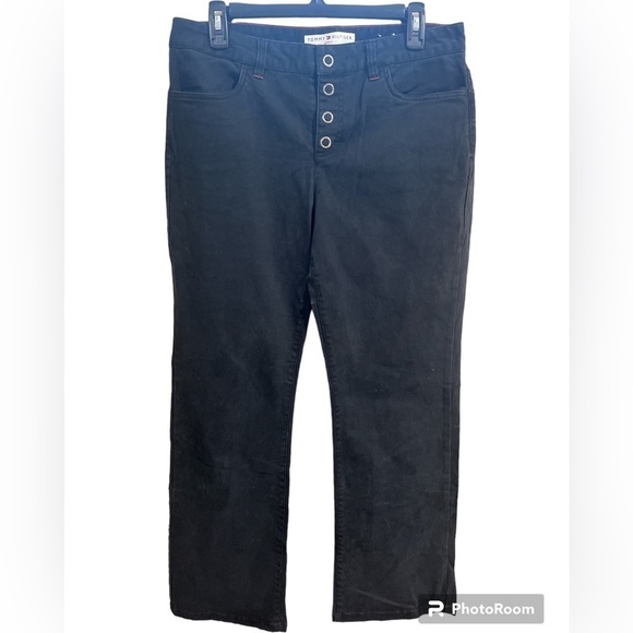 Vintage TOMMY HILFIGER JEANS Y2K Snap Button Fly Bootcut Black Size 8 Preppy