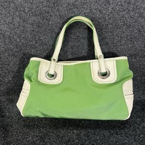 Vintage TOMMY HILFIGER White/GREEN Nylon FAUX LEATHER Y2K 90s Purse