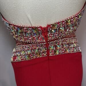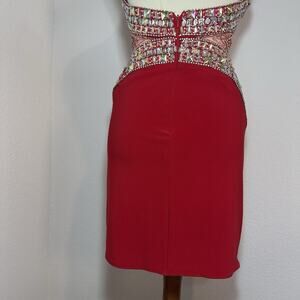 Vintage TONY BOWLS Sequin Cut Out Red Halter Cocktail Dress Pageant HOCO Formal