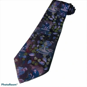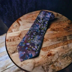 VINTAGE TOOTAL Made in Great Britain Multi-Color (Purple Green, Blue, Gray) Harvest Theme 100% Polyester Men's Neck Tie