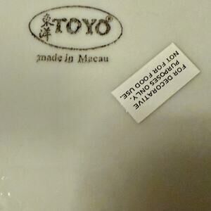 Backstamp: “TOYO – Made in Macau” with label: “For Decorative Purposes Only – Not For Food Use.”