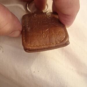 Vintage TR Bentley Leather Keychain Puffy Brown Stitched Keyring Fob