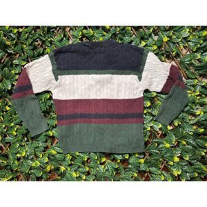 Vintage TRADER BAY 100% Cotton Cable Knit Striped Sweater Size Large