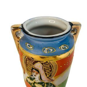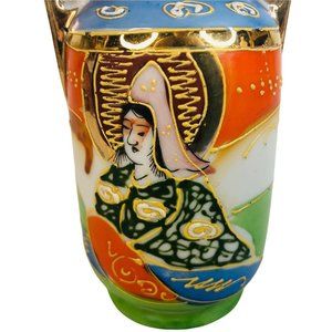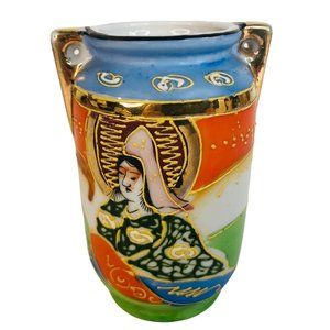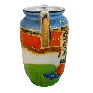 Vintage TRICO Vase Nagoya Japan Hand Painted 4” Tall Embossed Green Orange Small