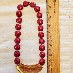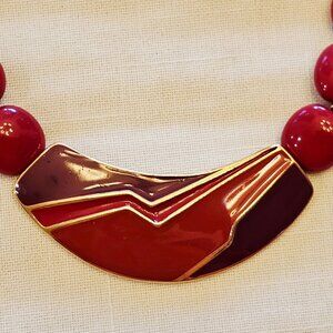 Vintage TRIFARI Cranberry Red & Plum Chevron Necklace & Matching Earrings set