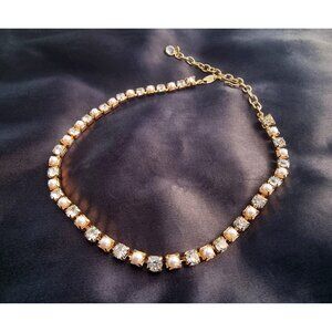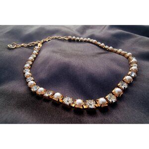 Vintage TRIFARI Gold Tone Clear Rhinestones and Faux Pearls Necklace