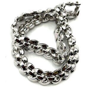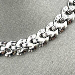 Vintage TRIFARI Pat Pend Ribbon Weave Link Silvertone Collar Necklace 15"