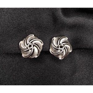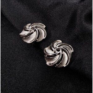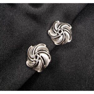 Vintage TRIFARI Signed 1960s Silver-Tone Swirl Clip-On Earrings Signed Elegant J