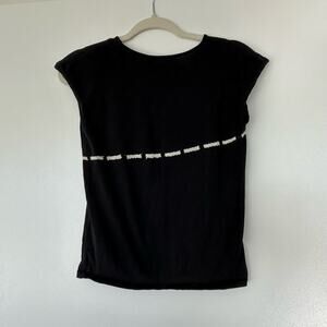 TRIO New York 100% Silk Black Sweater White Ribbon Bow Women’s Top M