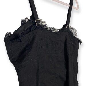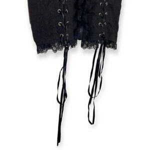 Vintage TRIPP NYC black embroidered ribbon lace up corset zipper floral lace XL