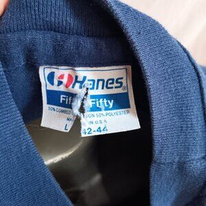 This vintage 1980's Hanes t-shirt features a unique single stitch design with a vibrant Hawaii surfer and dolphins print. Ideal for retro fashion enthusiasts, this large-sized tee offers a comfortable fit for any casual occasion.