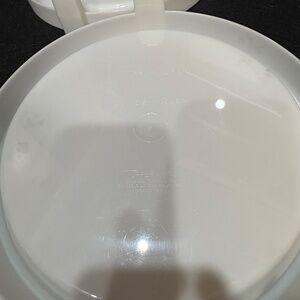 Comes with the two stacking pie holder racks off white in color.