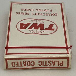 This is a really cool vintage set of sealed plating cards from TWA. It’s part of their collector’s series and they are bridge sized (approximately 3.5 x 2.5 inches long) the plane pictures is the 1959 Boeing 707. Made in USA and cards are plastic coated.