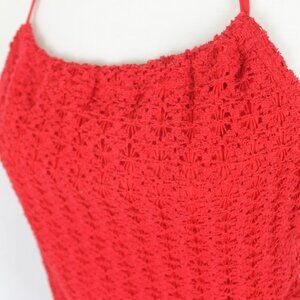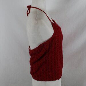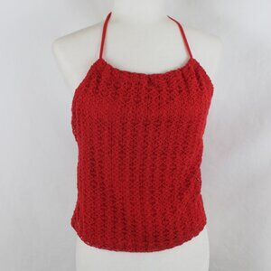 Vintage TWO ROADS Halter Tank Top Woman Size Large Red Lace Cropped Drawstring