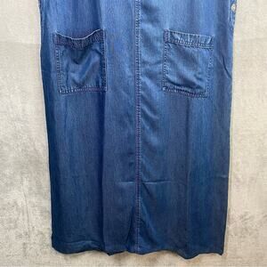 Vintage TY Traditional Denim Maxi Dress Size 14 Pinafore Sleeveless Modest