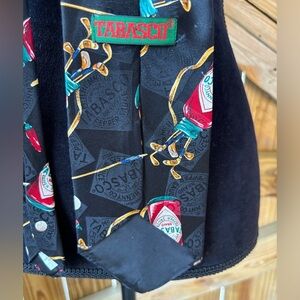 Vintage Tabasco Black Red & Gold Golfer Silk Necktie with Tabasco Golf Bags