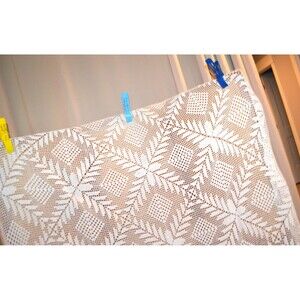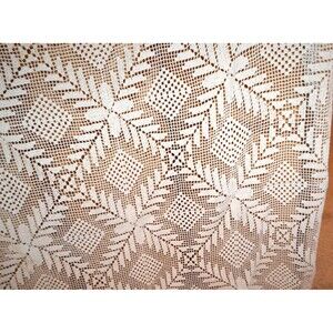 Vintage tablecloth in VERY good condition. The stunning, buff crochet cloth is a rectangle. Mod, straight edges. I always think these sprigs, are sprigs of friendship. Perfect for shabby chic, victorian, country, primitive, french cottage, mcm and other home trends. Can be used with casual to formal place settings. Cant imagine how much time this took to create. Beautiful find.