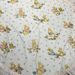 Vintage Tablecloth Handmade Easter Bunny Rabbit School Spring Ruffle Round