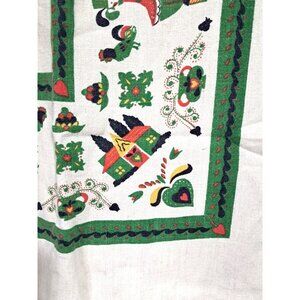 Vintage Tablecloth Pennsylvania Dutch Amish Harvest Folk Linen Rectangular 56 x 80 in