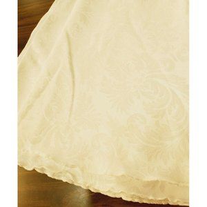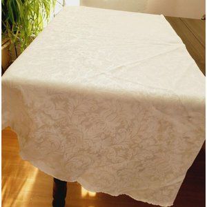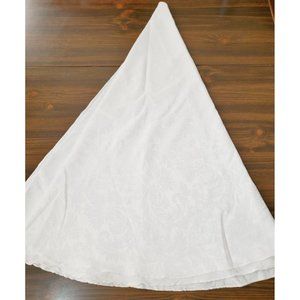 Vintage Tablecloth Round White Jacquard Floral Surged Edge 62" Diameter