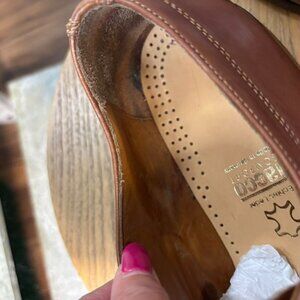 Minor scuffs and wear on the inner lining, slight creasing on the toe area.