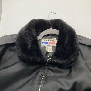 Vintage Tact Squad Black Large Flight Jacket Nylon Faux Fur Collar Aviator*Read