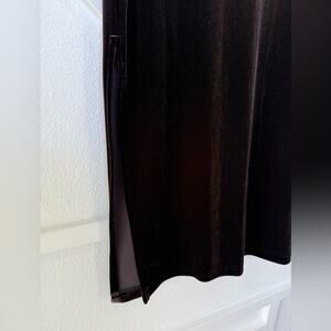 Vintage Tadashi Chocolate Brown Velvet Midi Skirt with Side Slit Size Large