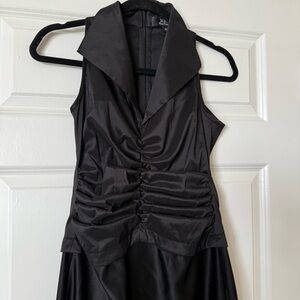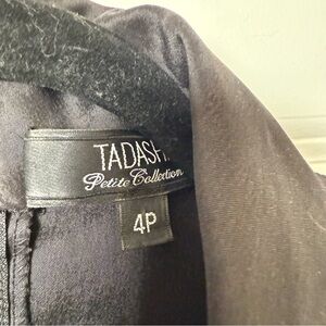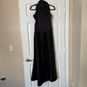 Vintage Tadashi Shoji Black Long Formal Dress Gown Size 4P. Excellent like new condition. Top part fabric has stretch to it. Bottom satin fabric nos stretch, let me know if you have any questions