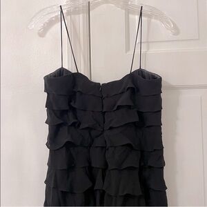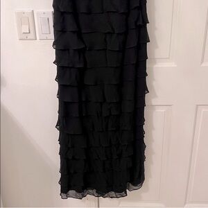Vintage Tadashi Layered Ruffle Spaghetti Strap Silk Chiffon Long Gown Black. Size: 14. Stunning and on trend! Long chifffon 100% silk black dress covered in layered romantic ruffles with spaghetti straps. Fully lined and back zip closure. 100% silk. Lining: 100% polyester. Excellent condition, only worn once for a wedding 20 years ago!