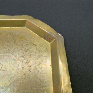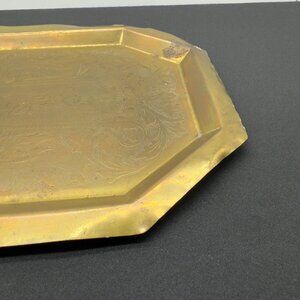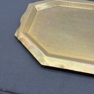 Add a touch of vintage elegance to your decor with this octagonal brass tray. Perfect for serving or displaying trinkets, it's a versatile piece that combines function with style.