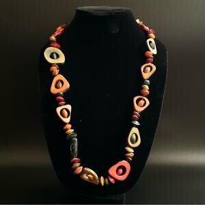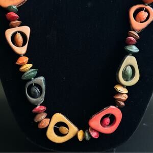 Vintage Tagua Nut Slices Bahay Seeds Boho Beaded Necklace