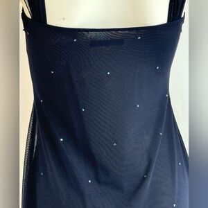 Vintage Tahari Navy Mesh Midi dress with Blue Crystals Size 2