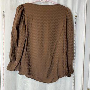 Vintage Tahari Blouse. Great pattern and buttons. 100% silk, made in Korea. Pit to pit - 16, back collar to hem - 23. Shoulders have the smallest of pads - more for structure and to give that puff appearance. Light weight, fairly sheer and flowy.