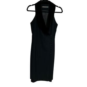 Vintage Tahari Wool/Silk Blend Sleeveless Dress Velvet Collar Glamor LBD Sz: 10