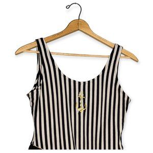 Vintage one piece swimsuit in a black & white nautical theme. There are little spots in the bra cups, see pictures.