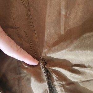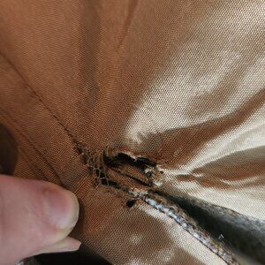 Has hole in inner lining and 2 small holes flaw on back fabric.