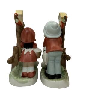 Adorable vintage figurine pair featuring a boy and girl tending geese beside rustic farm posts. Made in Taiwan (R.O.C.), these hand-painted porcelain pieces display charming country detail and warm, nostalgic colors. Perfect for collectors, farmhouse décor, or seasonal display.