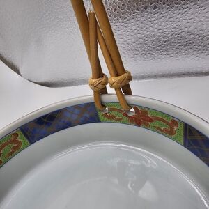 Vintage Takahashi Bowl Dish Bamboo Handles Japan Asian Ceramic Red Blue Floral. Good condition. Handles do have some wear, please view photos. Sold as shown in photos. Any questions please let me know. Thanks for looking.