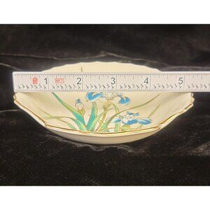 Vintage Takahashi Hand-Painted Porcelain Trinket Dish Featuring Irises